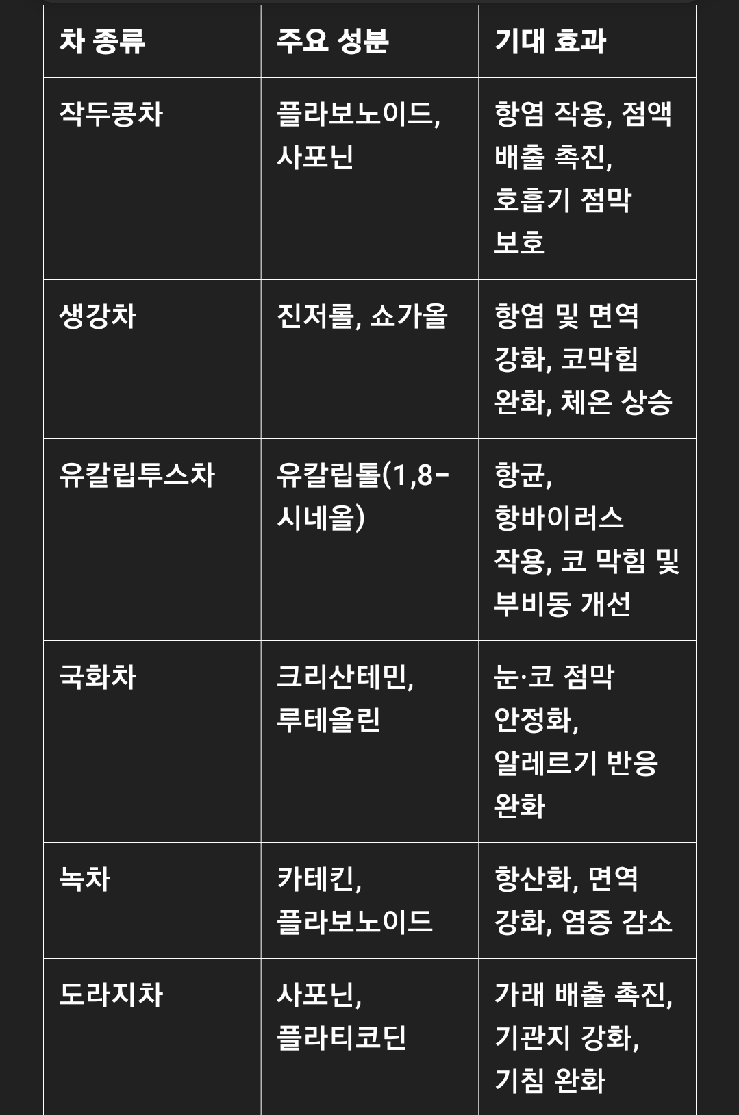 건강 차를 올바르게 활용해, 숨 쉬는 매 순간이 더 편안해지시길 바랍니다.