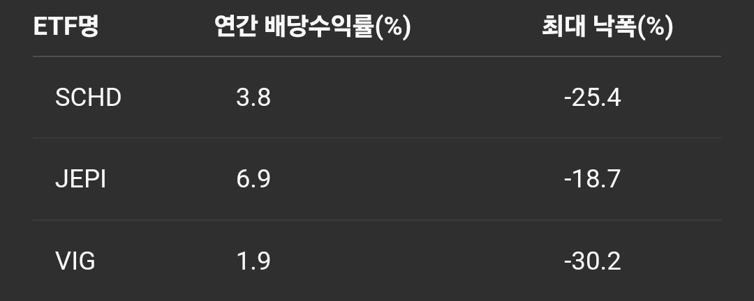 JEPI ETF도 유사한 시기에 최대 낙폭이 18%에 달했습니다. 특히 옵션 전략을 활용해 배당을 보완하는 구조였지만, 변동성 급등 시 기초 자산의 가격 하락을 완전히 방어하지 못했습니다.