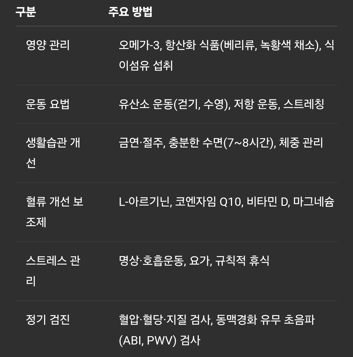 정기 검진 혈압·혈당·지질 검사, 동맥경화 유무 초음파(ABI, PWV) 검사