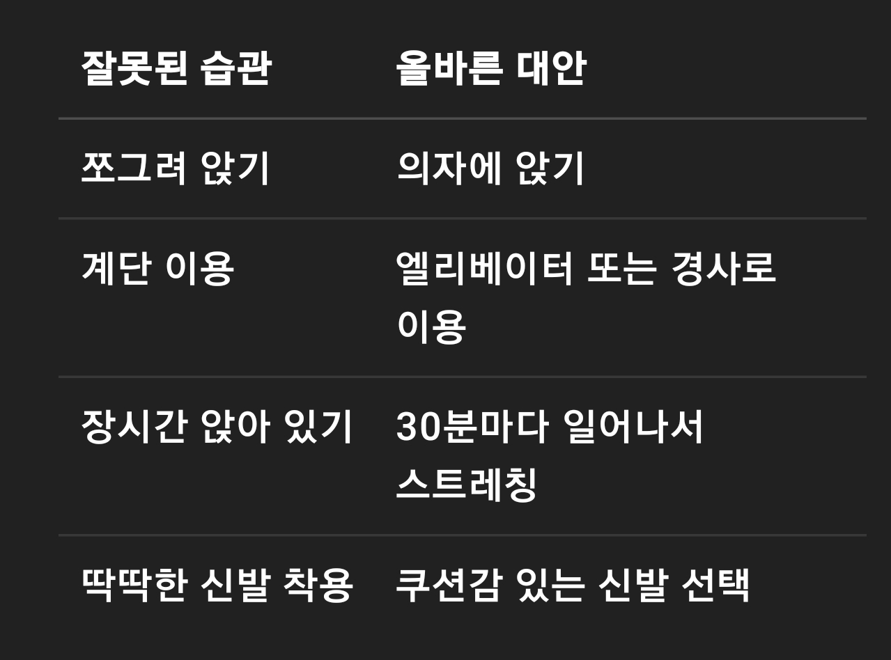 🎯 무릎 관절을 위한 좋은 생활습관