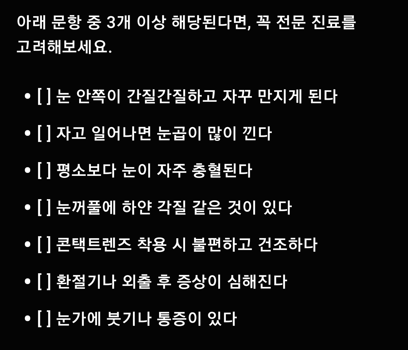 [ ] 콘택트렌즈 착용 시 불편하고 건조하다