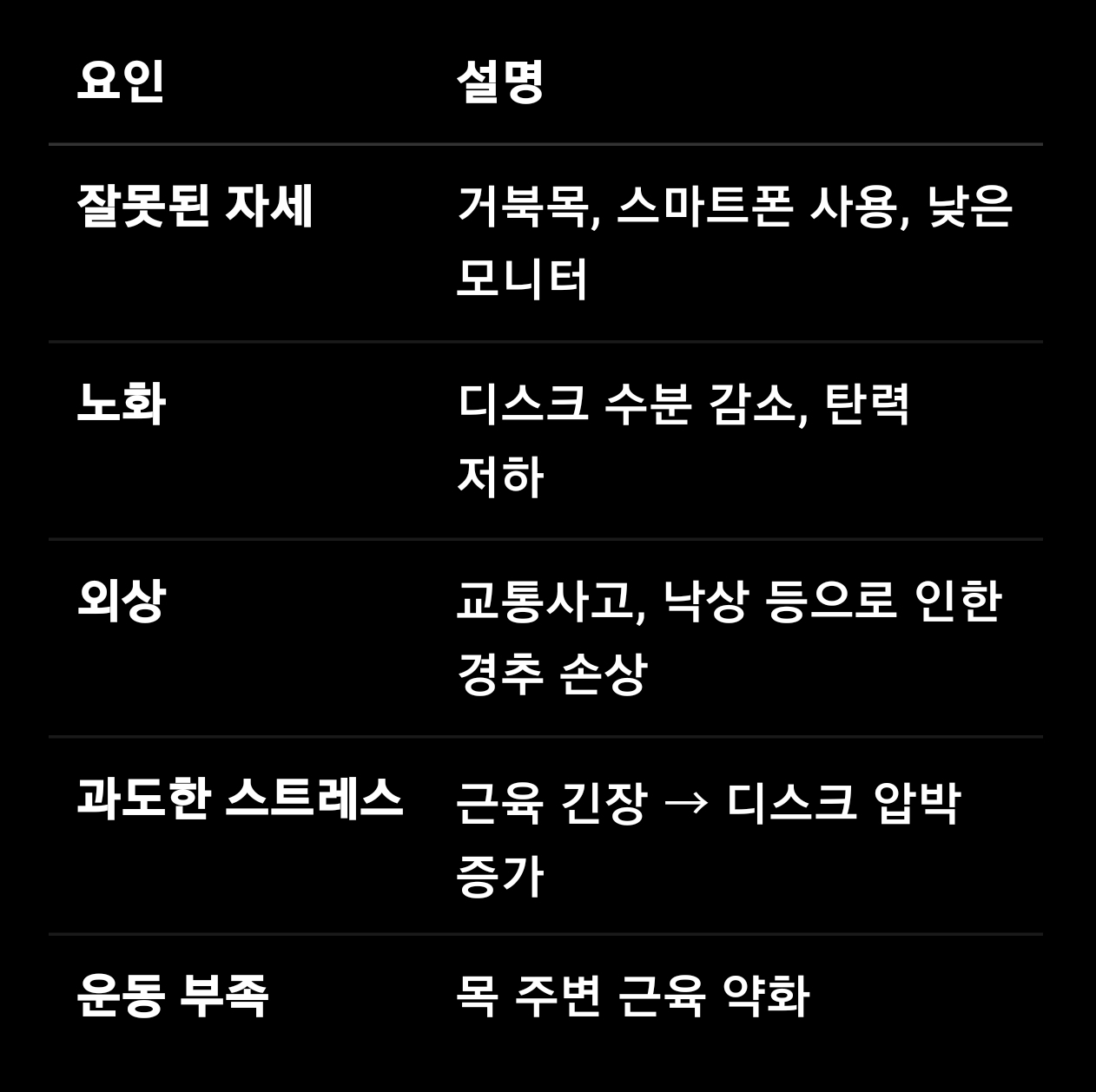 목뼈 사이에 있는 **디스크(추간판)**가 제자리에서 밀려나오며