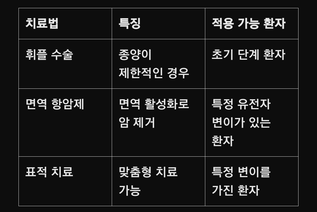 췌장암 치료의 핵심은 수술이지만, 전체 환자의 20%만이 수술이 가능한 상태에서 진단된다. 휘플 수술은 췌장의 머리 부분을 절제하는 방법으로, 수술 후에도 추가적인 항암 치료가 필요하다.