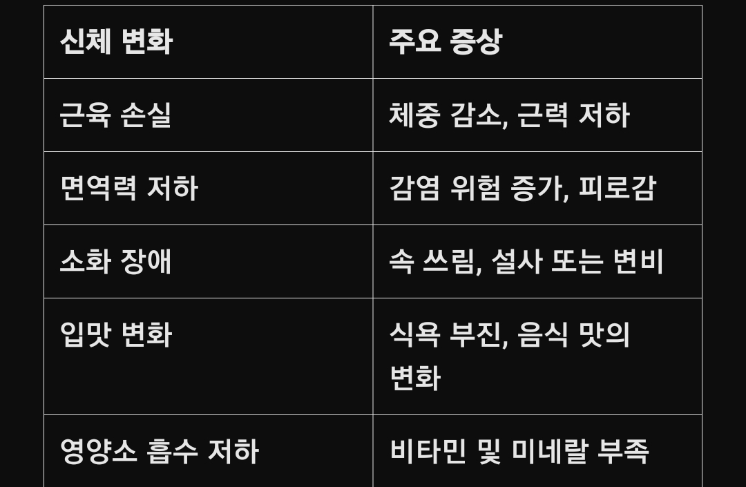 이러한 변화를 극복하기 위해서는 충분한 영양 섭취와 체계적인 관리가 필요하다.
