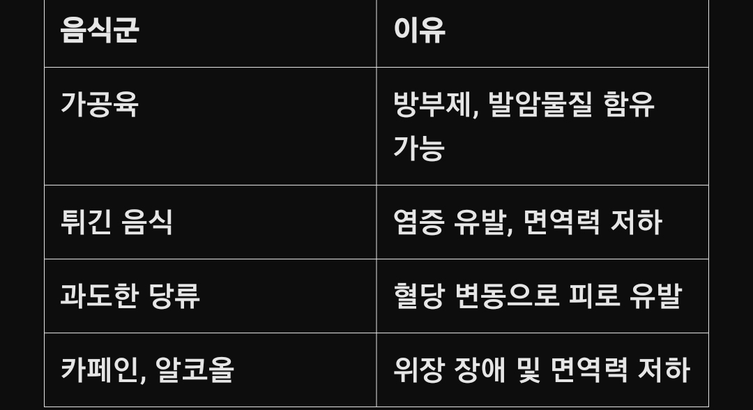가공식품, 튀긴 음식, 알코올 섭취 제한